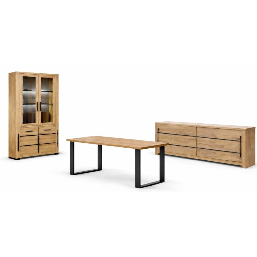 De Eetkamer Otto in Scarlet Oak kleur brengt een tropisch landelijk design in je huis. Deze 3-delige set bestaat uit een dressoir van 230 cm, een glaskast van 145 cm en een eettafel van 200 cm. Het warme Scarlet Oak biedt een natuurlijke, luxe uitstraling die perfect past in een eigentijdse woonkamer of eetkamer. De tropische invloeden gecombineerd met landelijk design zorgen voor een gezellige en stijlvolle sfeer in je interieur.
