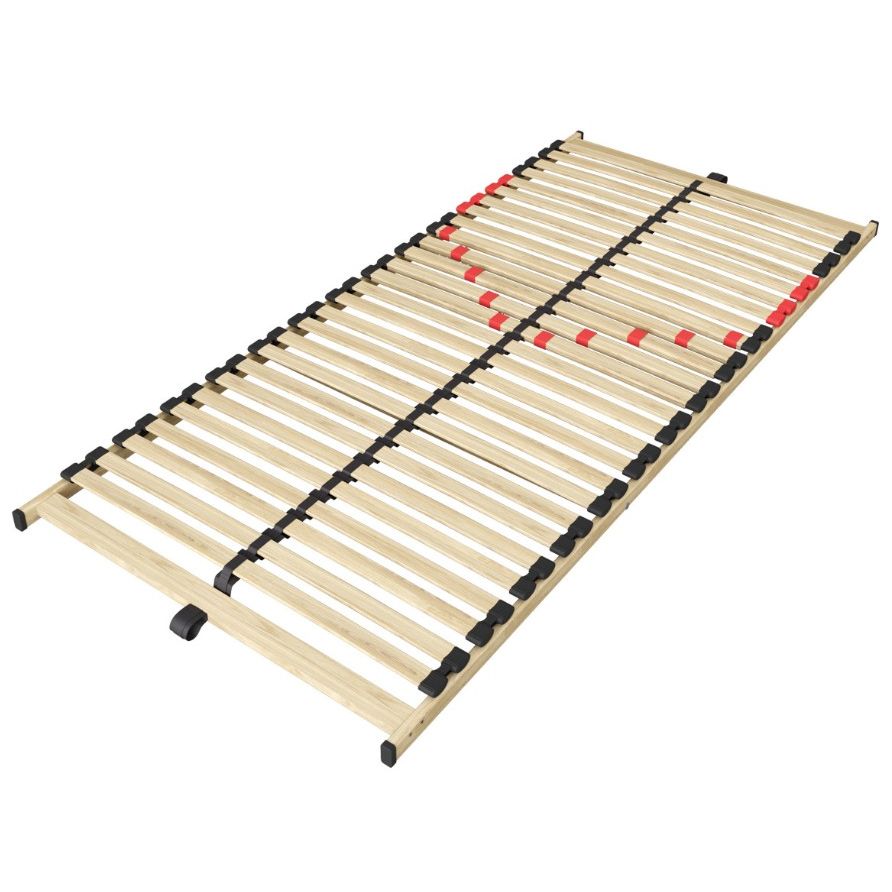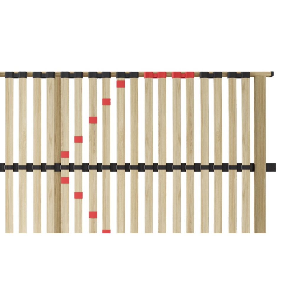 Lattenbodem met 28 latten met kunststof beschermkappen. De lattenbodem heeft 5 verstelbare latten, waarmee u zelf de gewenste ondersteuning instelt. Een doorvlochten kunststof middenband zorgt voor een optimale gewichtsverdeling.