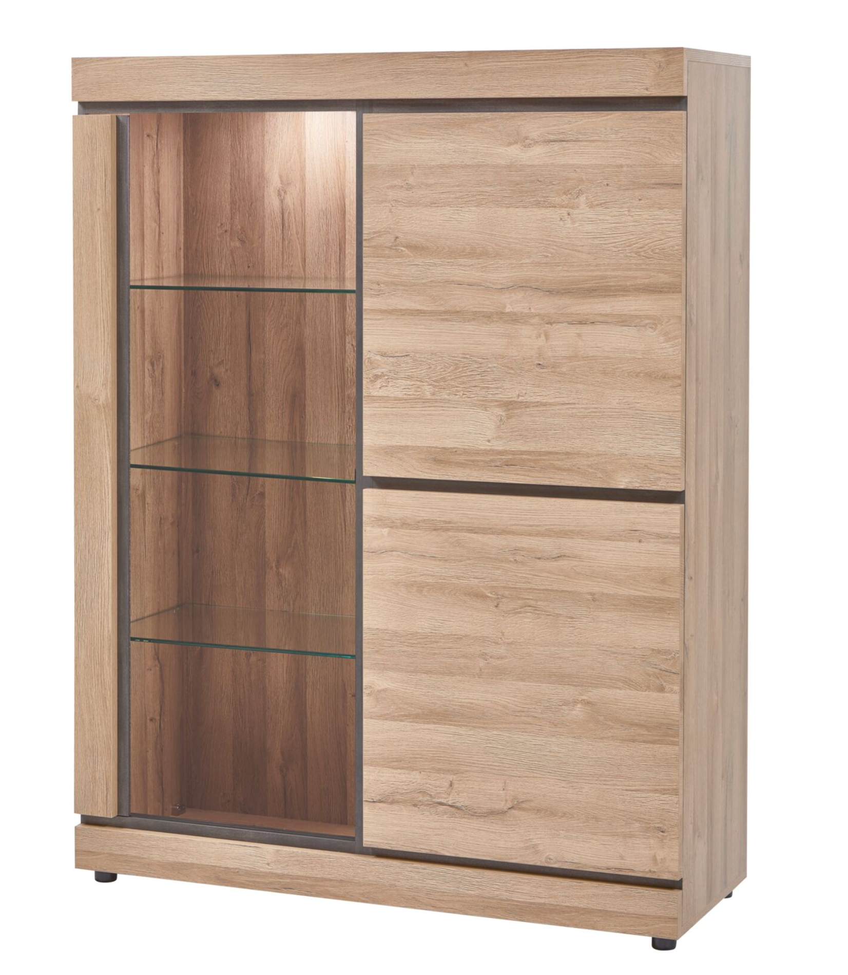 Breng sfeer en elegantie in huis met de Glaskast Marnix. Deze stijlvolle vitrinekast in de warme kleur French Oak combineert een natuurlijke houtlook met een moderne uitstraling. Dankzij de ingebouwde LED-verlichting komen jouw mooiste accessoires, servies of verzamelobjecten prachtig tot hun recht – zowel overdag als ’s avonds.
