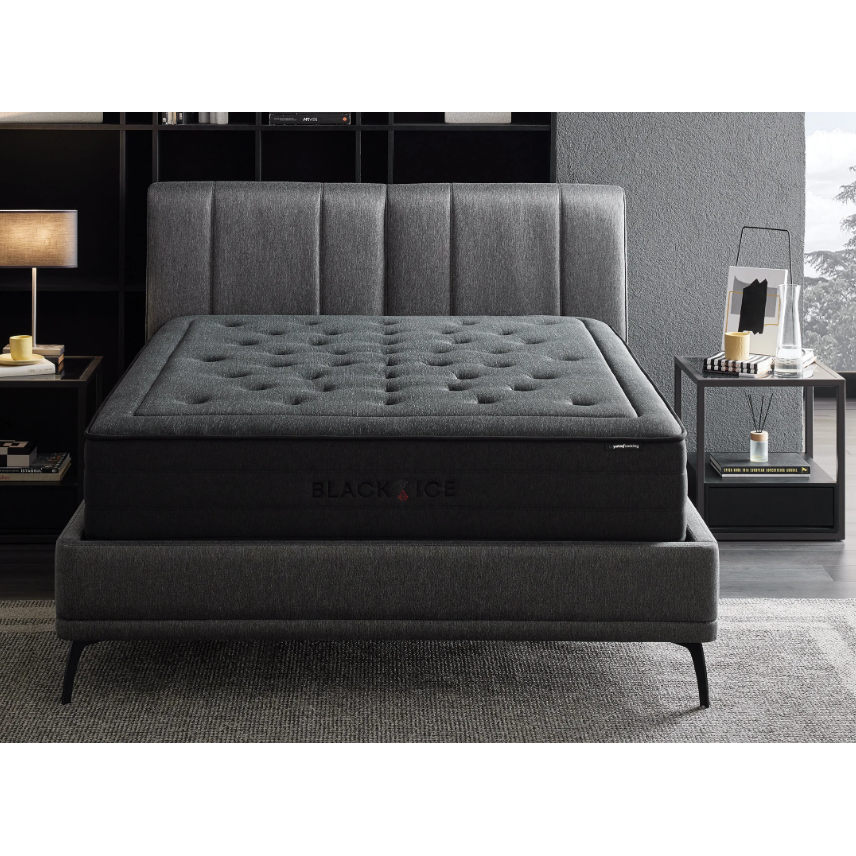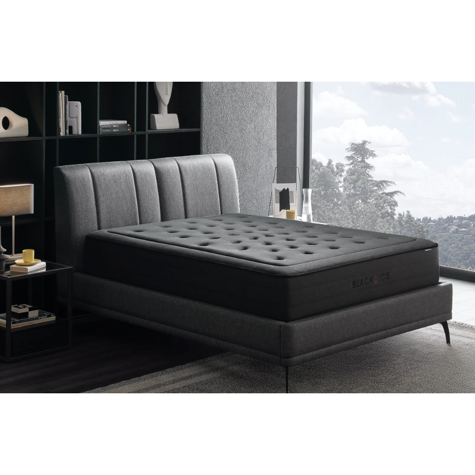 De Black Ice Boxspring combineert hoogstaand comfort met een verfrissende, koelende werking dankzij de unieke zwarte stof.