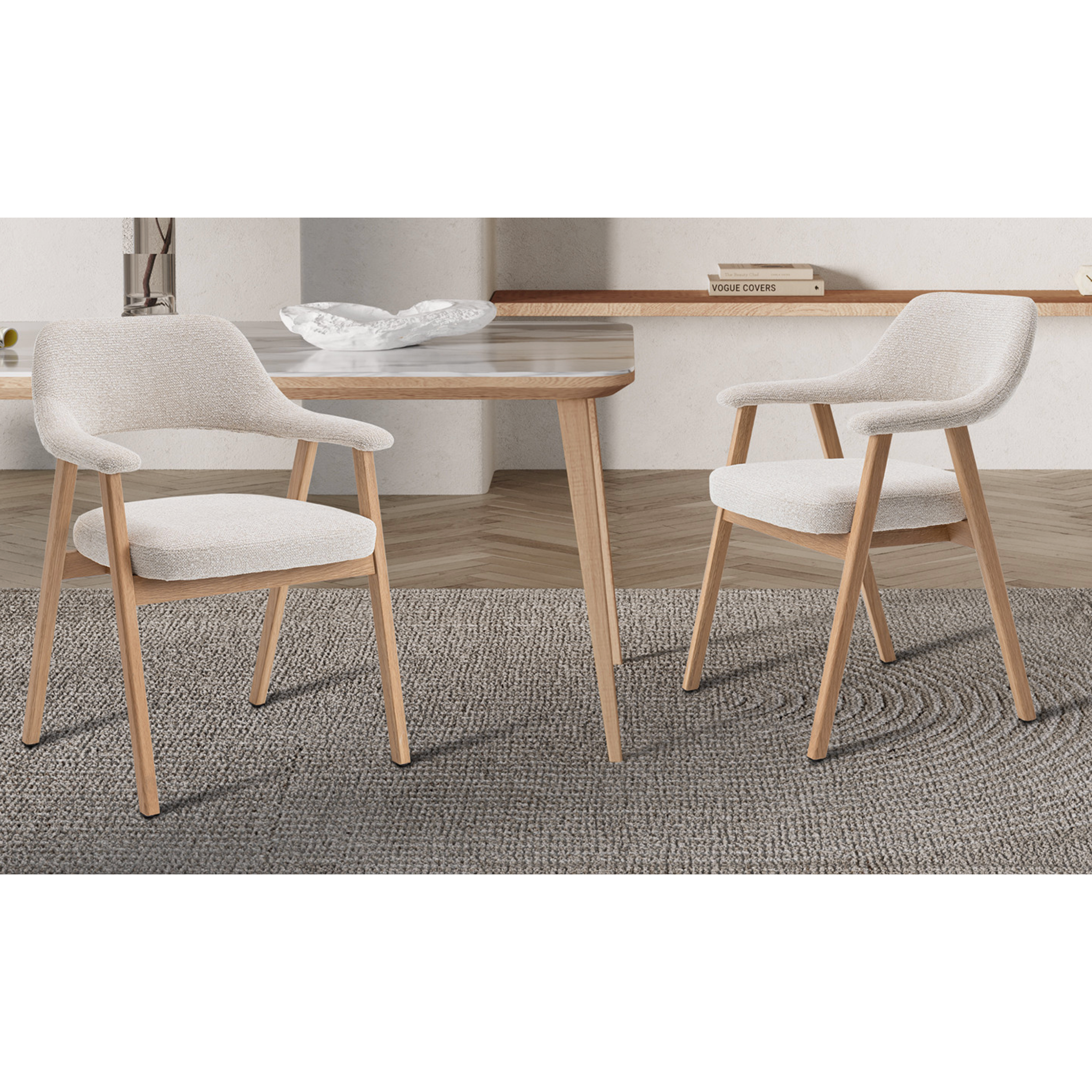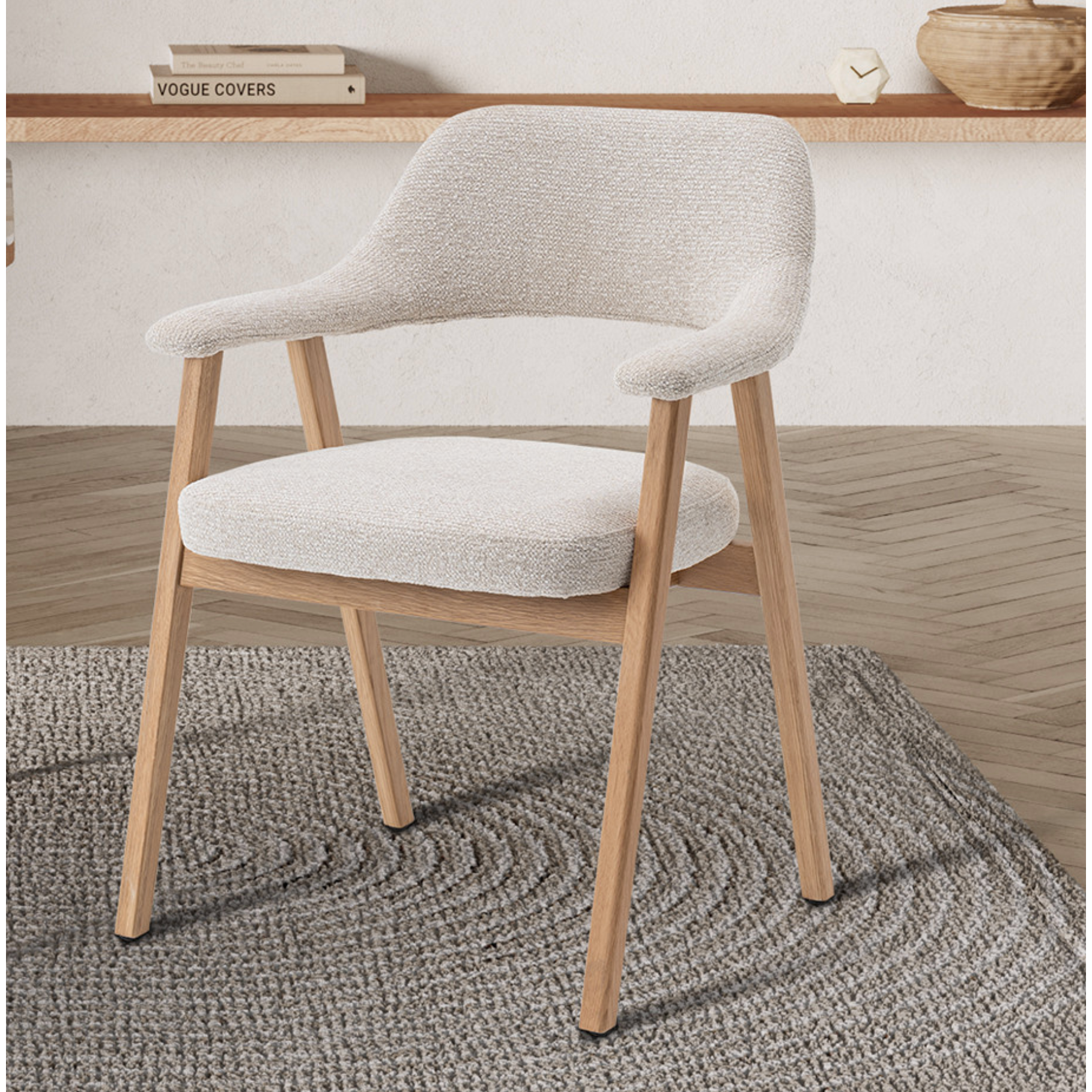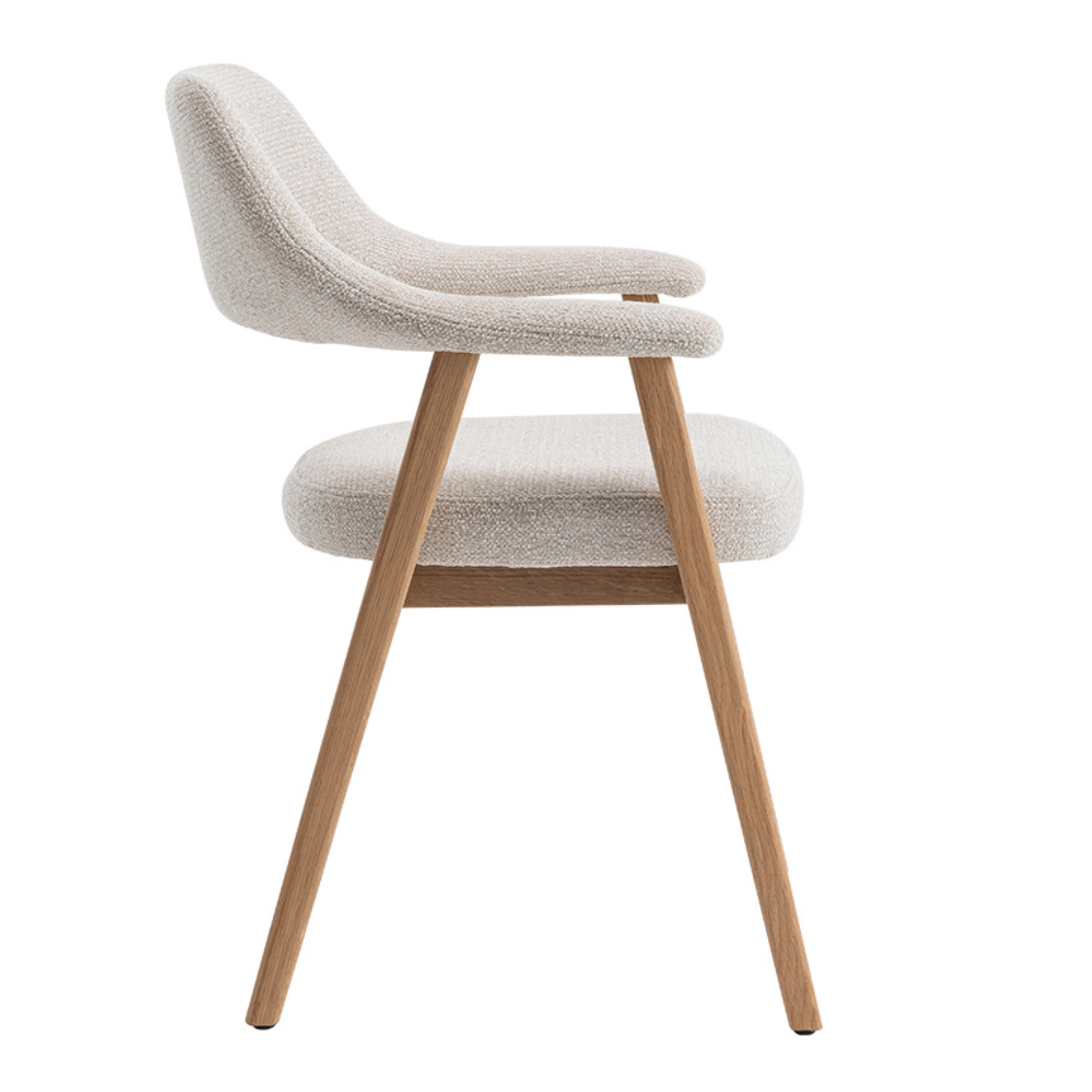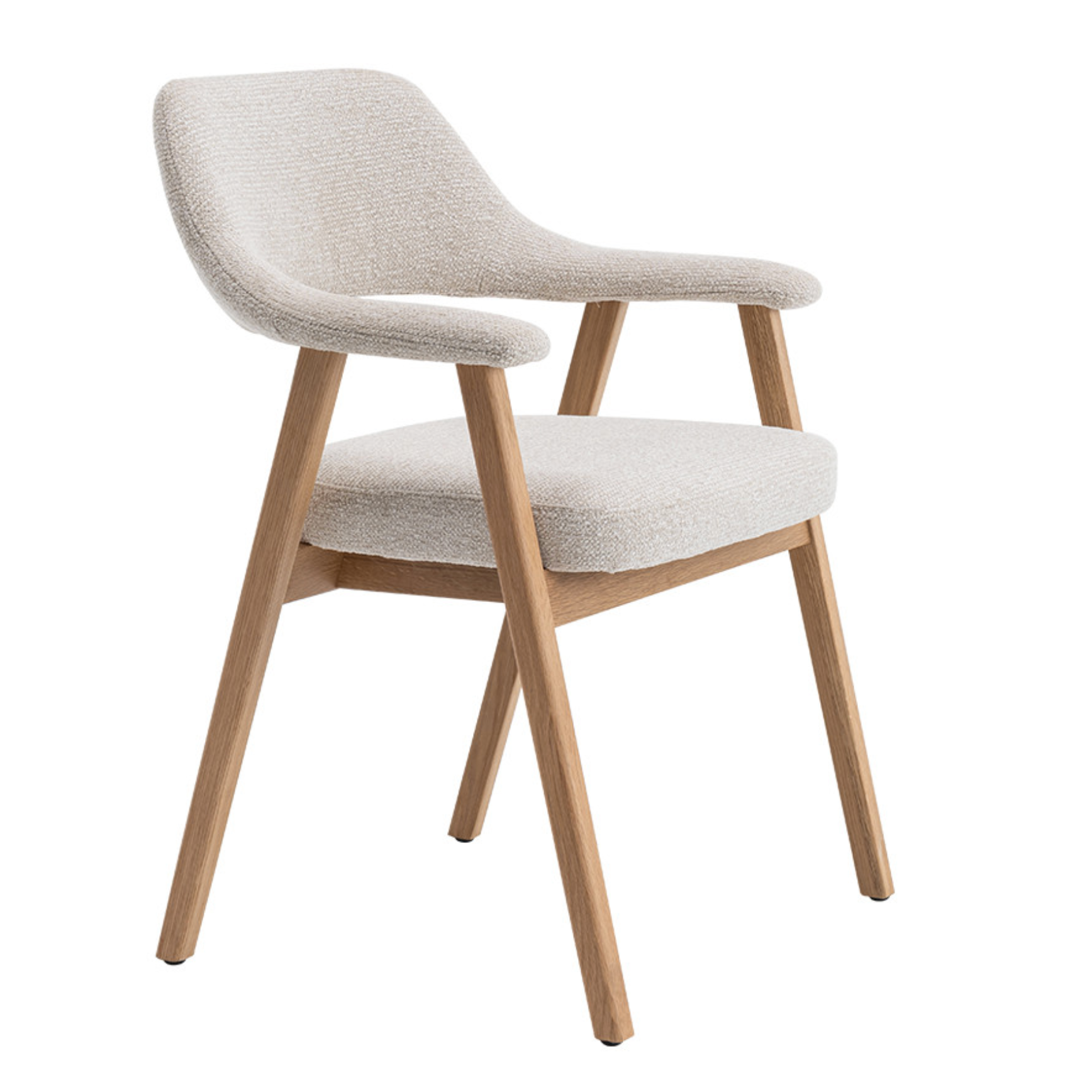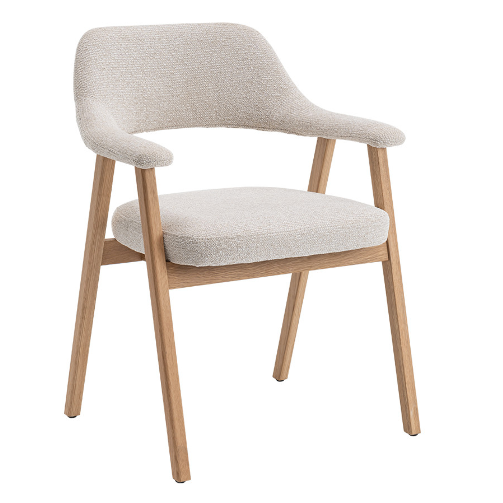 Breng warmte en stijl in je eetruimte met de Eetkamerstoel Coralie. Deze prachtige stoel is vervaardigd uit massief eikenhout, wat zorgt voor een duurzame en natuurlijke uitstraling. De elegante armleuningen bieden extra comfort en ondersteuning, perfect voor lange diners of gezellige gesprekken aan tafel.