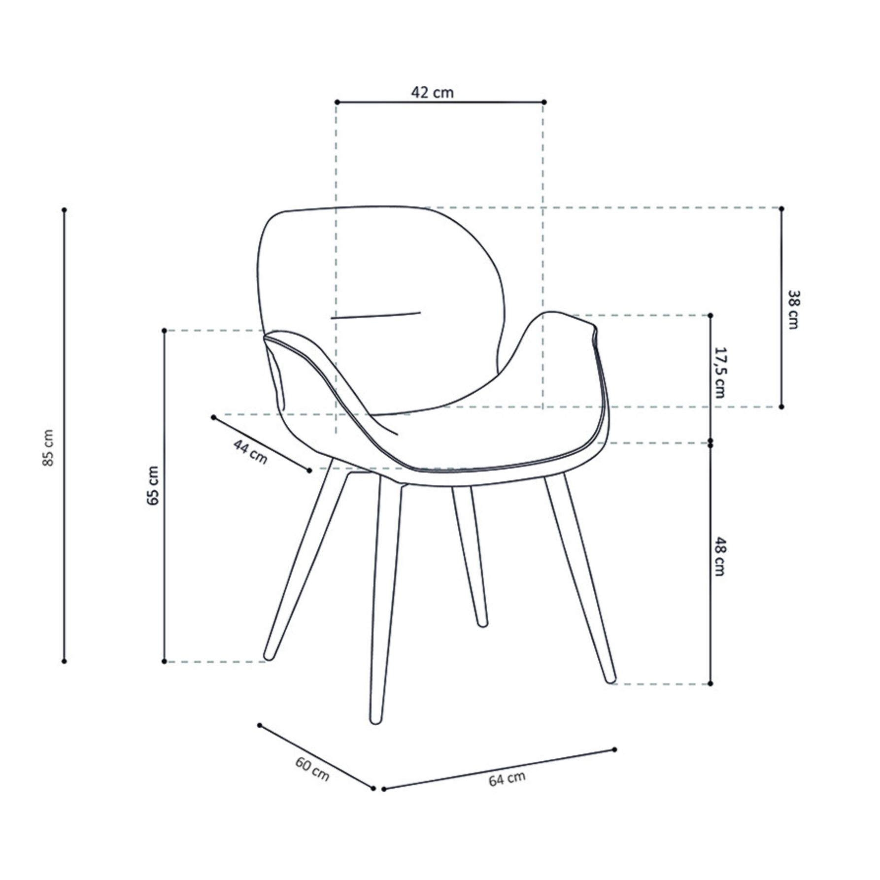 Deze trendy eetkamerstoel past in elk interieur. Met zijn stevige constructie op metalen poten en armleuning, en zijn moderne vormgeving, kan hij overal toegevoegd worden.