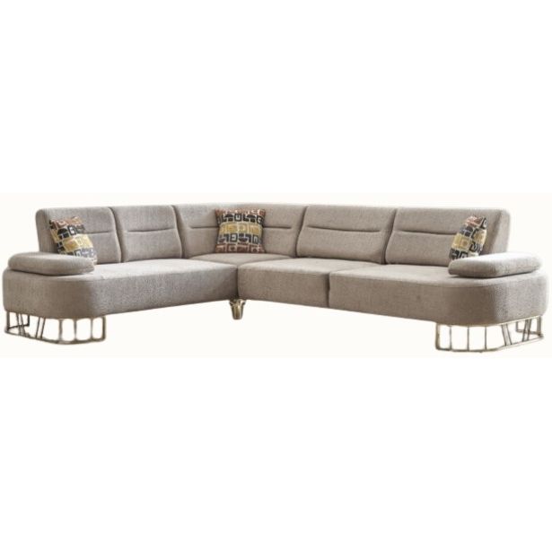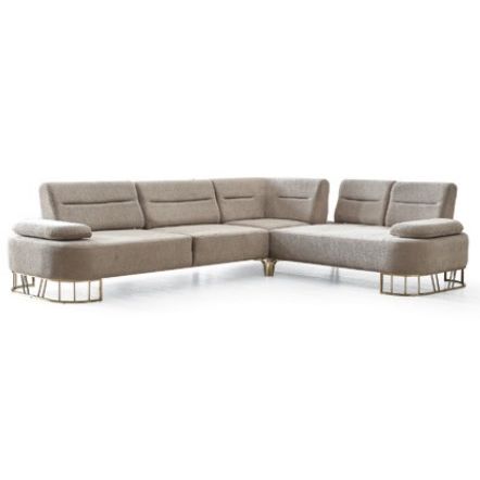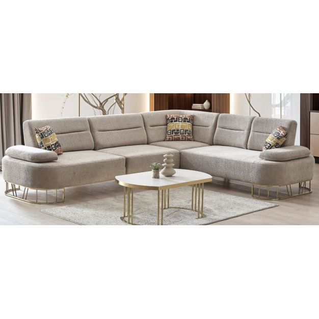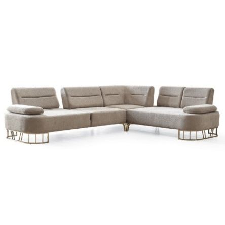 De Modena hoeksalon brengt een stijlvolle en luxueuze uitstraling in je woonkamer dankzij de verfijnde lijnen en het moderne, goudkleurige pootontwerp.