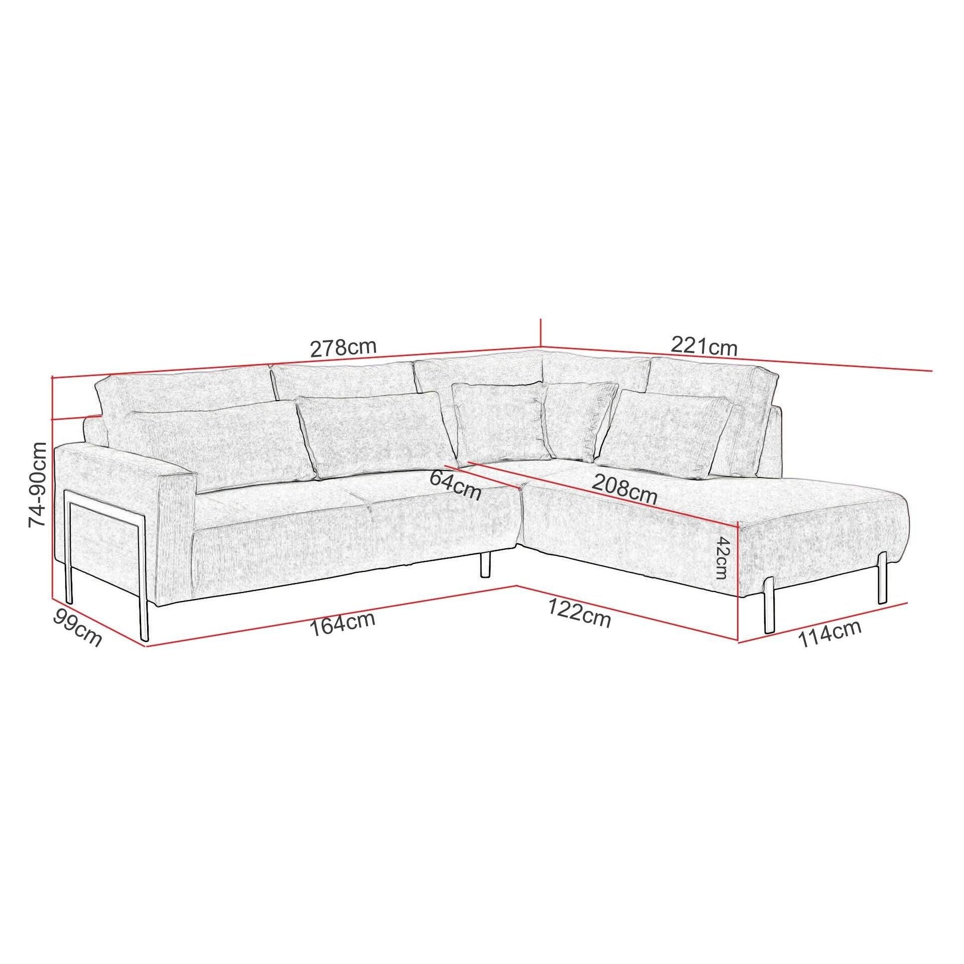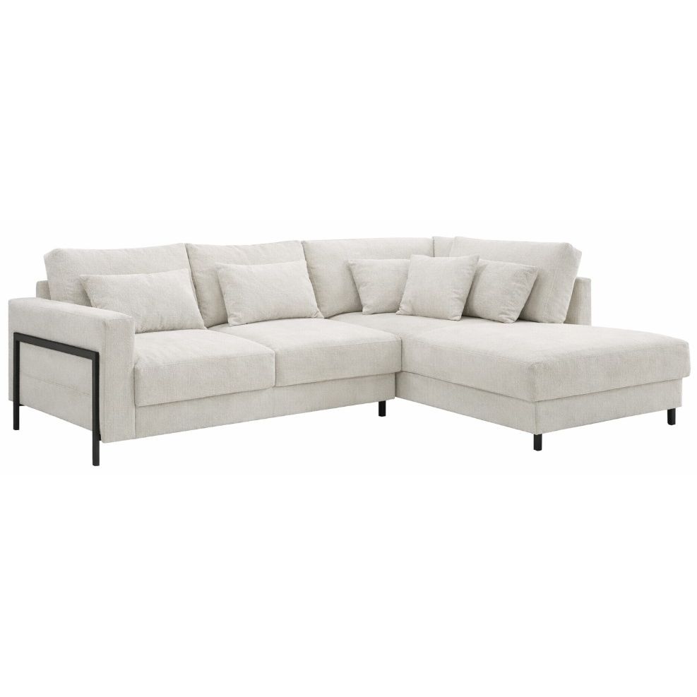 Hoeksalon Niagara brengt elegantie en comfort samen in een hedendaags design. Dankzij de hoge metalen poten krijgt de salon een luchtige en stijlvolle uitstraling die je woonkamer optisch ruimer maakt. Het royale zitgedeelte met zachte kussens nodigt uit om heerlijk te ontspannen en maakt deze hoekbank ideaal voor zowel dagelijks gebruik als gezellige momenten met familie en vrienden.