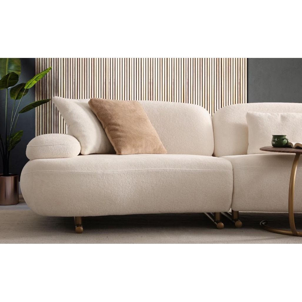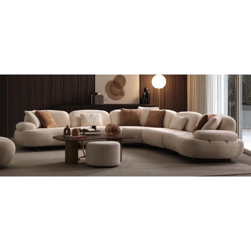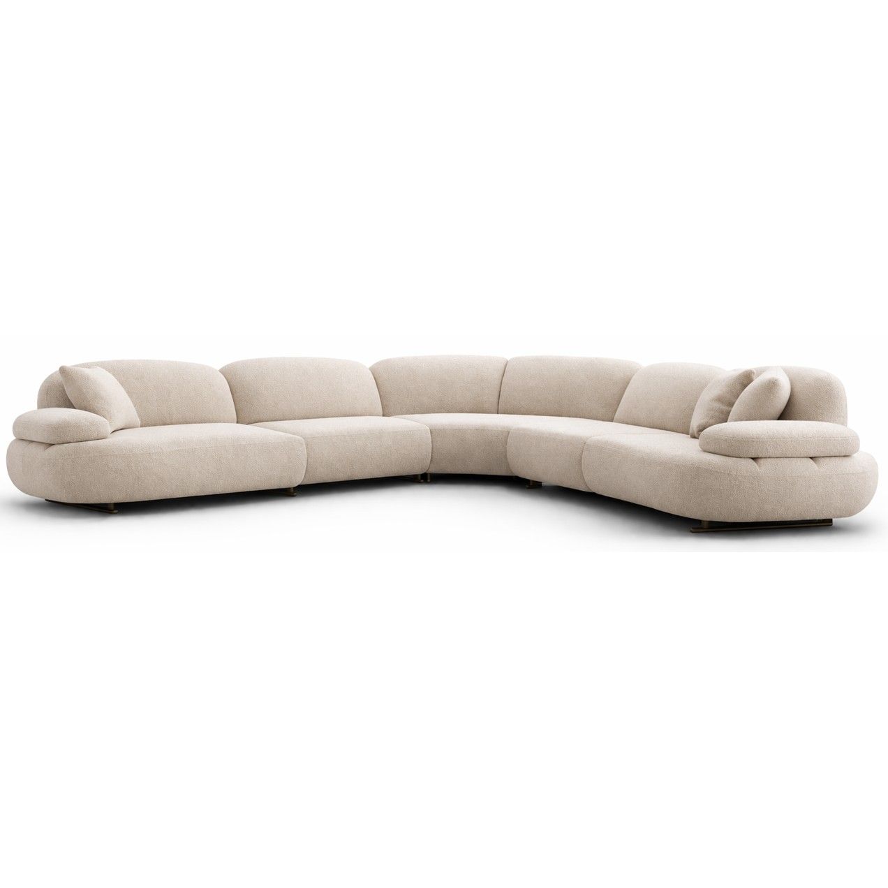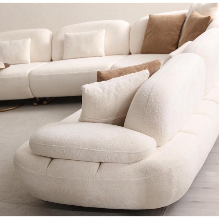 Dankzij de ruime hoekopstelling biedt deze salon uitzonderlijk veel zitruimte, ideaal voor gezellige momenten met familie en vrienden. Het lage, afgeronde design zorgt voor een moderne en luxueuze uitstraling die perfect past binnen hedendaagse interieurs.