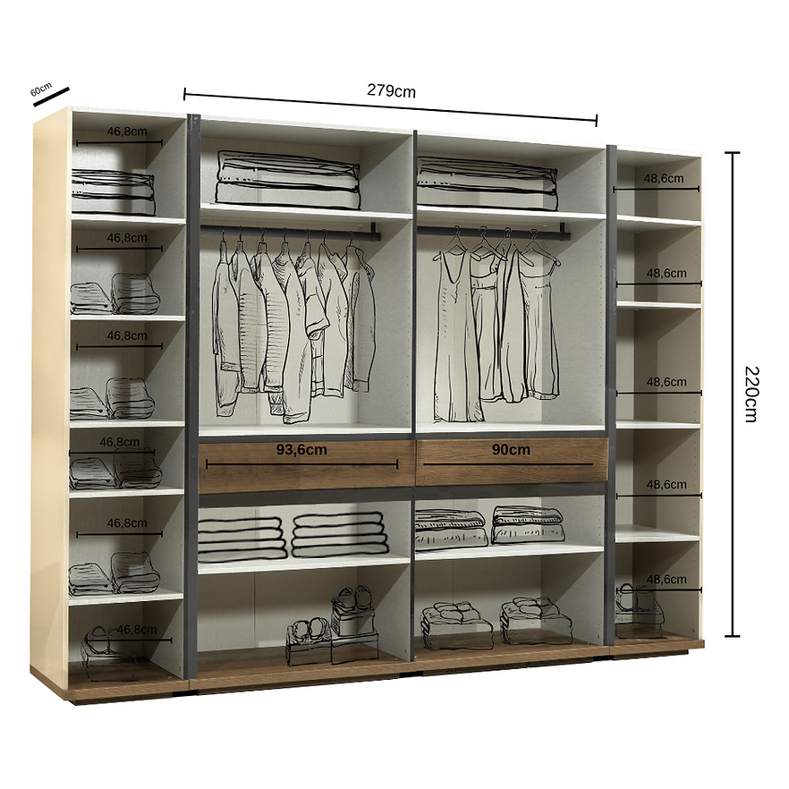 KLEERKAST DRAAIDEUR ARSEN 2 - 6-DEUR - 2 LADE