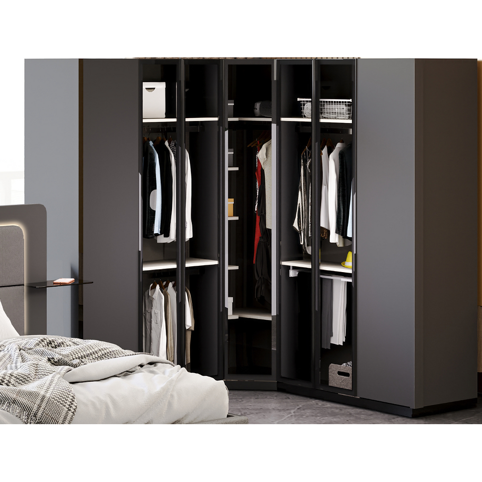 De Kleerkast Arsena Hoek is een functionele en stijlvolle kast met zes draaideuren. Gemaakt van duurzame MDF, biedt deze kast voldoende opbergruimte voor je kleding en accessoires. Het strakke design past perfect in verschillende interieurstijlen. Ideaal voor wie zowel functionaliteit als esthetiek zoekt in een kleerkast.