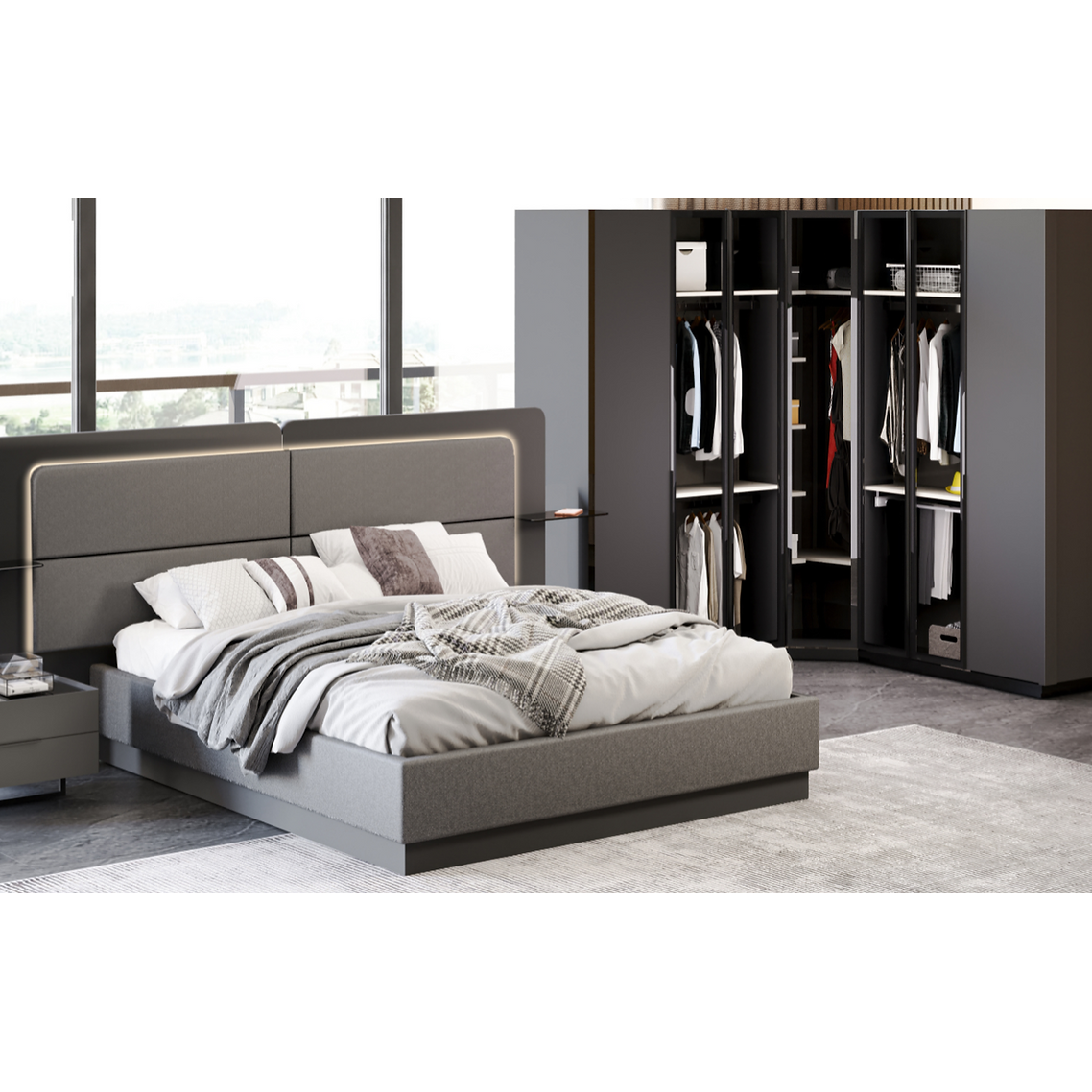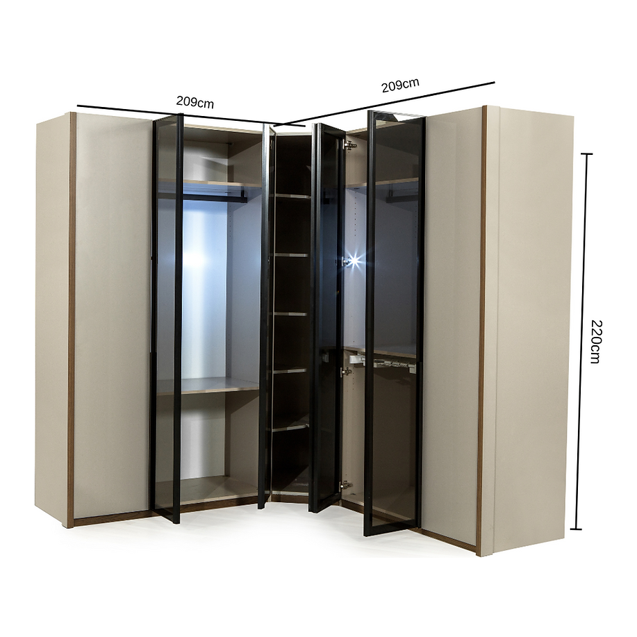 KLEERKAST DRAAIDEUR ARSENA GLAS - HOEKKAST + LEDVERLICHTING