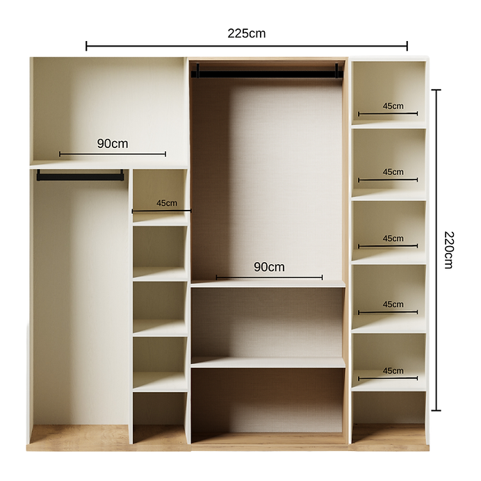 De Kleerkast Belen is een functionele en stijlvolle kast met vijf draaideuren. Gemaakt van duurzame MDF, biedt deze kast voldoende opbergruimte voor je kleding en accessoires. Het strakke design past perfect in verschillende interieurstijlen. Ideaal voor wie zowel functionaliteit als esthetiek zoekt in een kleerkast.