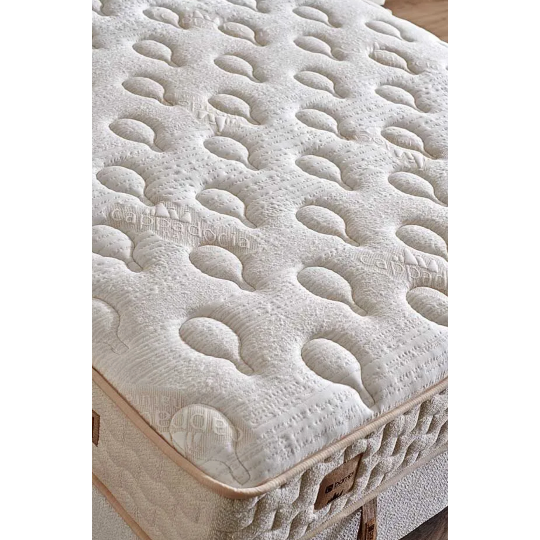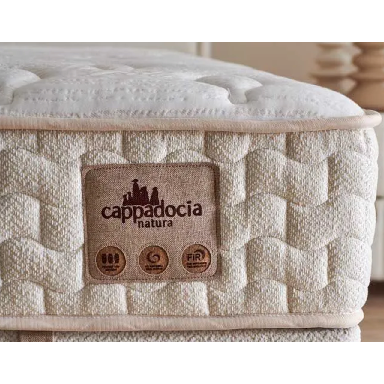 CAPPADOCIA NATURA is ontworpen met inspiratie uit natuurlijke mineralen en moderne slaaptechnologie. De tijk met Cappadocië-klei ondersteunt ventilatie en helpt vocht en warmte op een evenwichtige manier te reguleren, waardoor een fris slaapgevoel ontstaat. De geïntegreerde Far Infrared technologie werkt met lichaamswarmte om een stabiele temperatuur en ontspannend ligcomfort te bevorderen. Dankzij het pocketveersysteem wordt het lichaam individueel ondersteund en blijft de wervelkolom in een natuurlijke houding. De zachte comfortlagen en HyperSoft schuim zorgen voor extra drukverlaging en een aangenaam liggevoel, terwijl de hoogwaardige materialen bijdragen aan een duurzame en comfortabele slaapervaring.