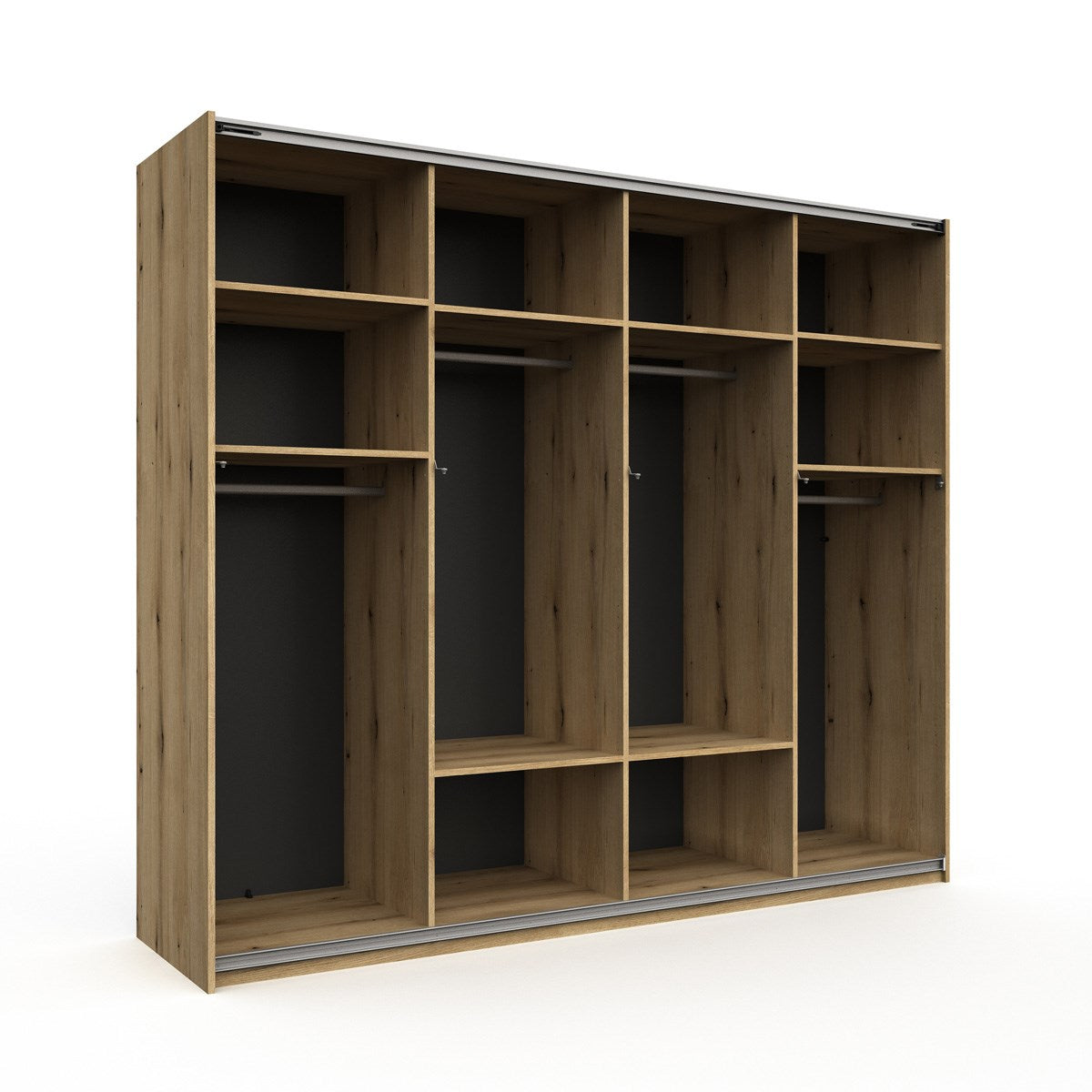 De handige kast biedt heel wat opbergruimte. In het midden vindt u twee vakken met telkens een garderobestang en twee legplanken.