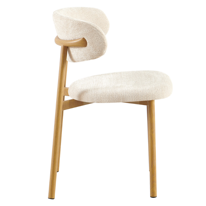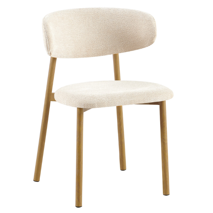 Het zachte, gestoffeerde zitvlak zorgt voor een aangename zitervaring en voegt een verfijnde touch toe aan het robuuste metalen frame met hout decor. Of je nu houdt van een moderne, landelijke of klassieke inrichting, de Coco past moeiteloos in elk interieur.