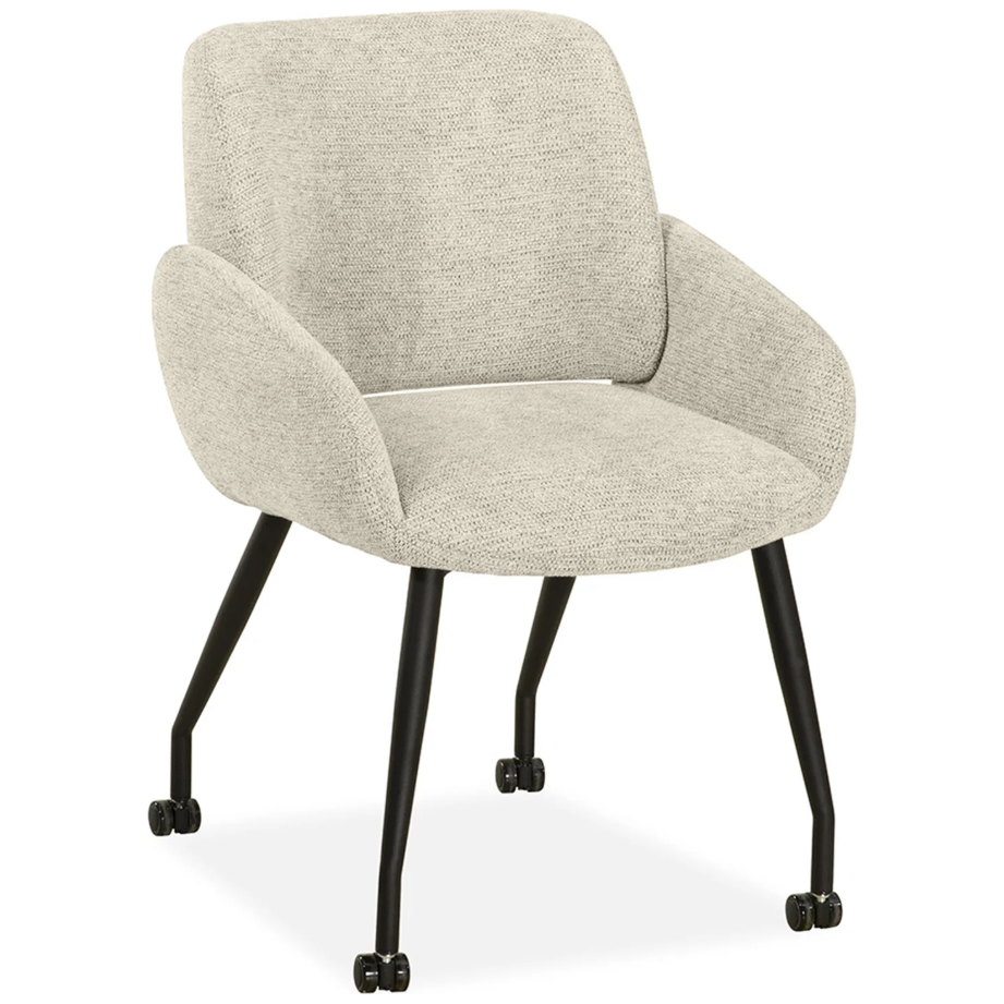De eetkamerstoel Rowan is een moderne stoel voor elk interieur. De metalen, zwarte voet zorgt voor stabiliteit. De bekleding in hoogwaardig Art stof maakt dat hij makkelijk te onderhouden is.