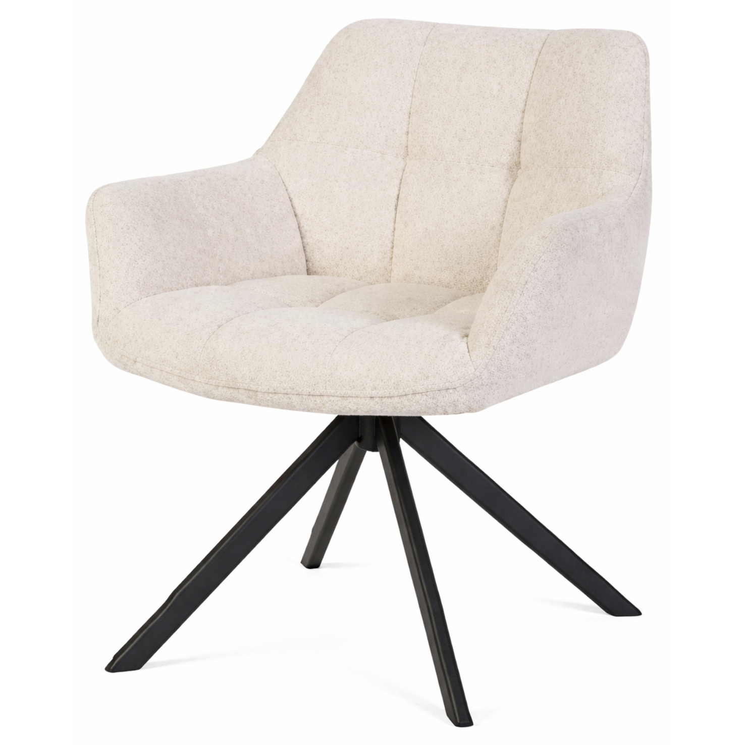 De armleuningen zorgen voor extra ondersteuning en maken de stoel bijzonder comfortabel, ideaal voor langdurig tafelen. Het metalen onderstel met draaivoet geeft de stoel een moderne en stabiele basis, terwijl het strakke design eenvoudig te combineren is met verschillende eettafels en interieurstijlen.