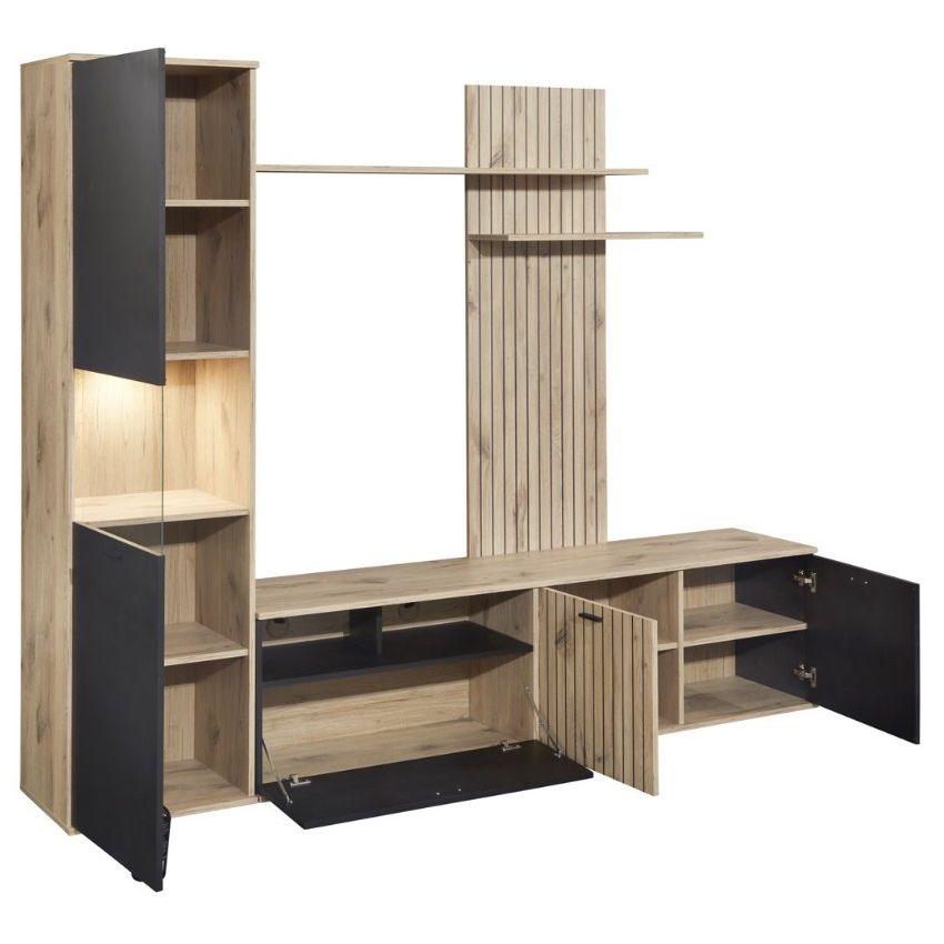 Het gezellige TV-meubel SILVER is een compleet wandmeubel dat functionaliteit en stijl perfect combineert. Dankzij zijn royale afmetingen en doordachte indeling biedt dit meubel uitzonderlijk veel opbergruimte voor je tv-toestellen, multimedia-apparatuur, decoratie en andere woonaccessoires.