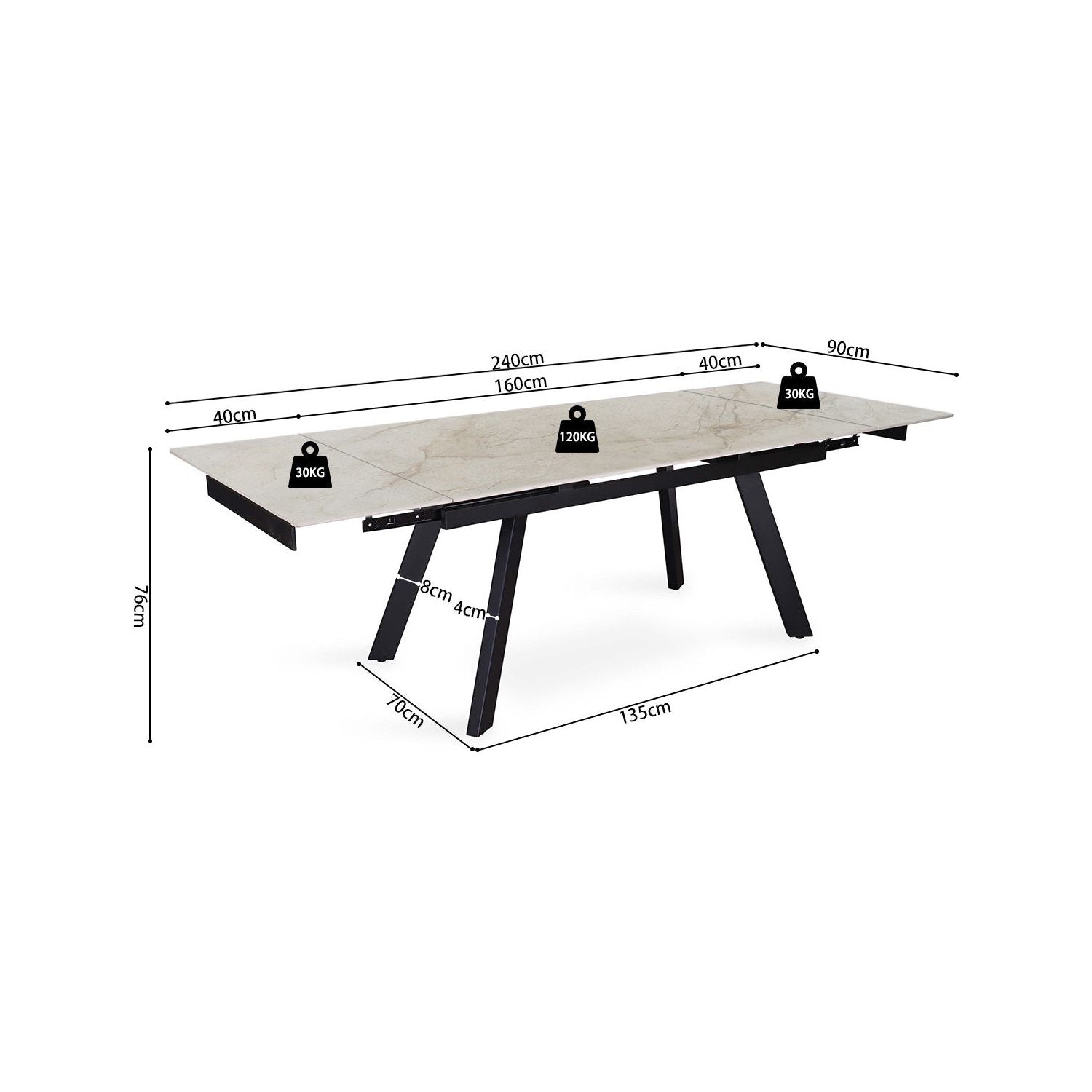 De eettafel HERA is een stijlvolle en praktische toevoeging aan elk interieur. Met een uitschuifbare functie biedt deze tafel flexibele ruimte, ideaal voor zowel kleine als grote etentjes. In gesloten positie heeft de tafel een lengte van 160 cm, maar door het uitschuiven kan de lengte worden vergroot tot 240 cm, waardoor er eenvoudig plaats is voor meer gasten.