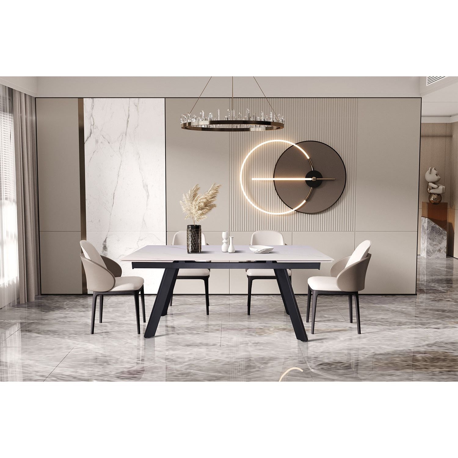 De eettafel HERA is een stijlvolle en praktische toevoeging aan elk interieur. Met een uitschuifbare functie biedt deze tafel flexibele ruimte, ideaal voor zowel kleine als grote etentjes. In gesloten positie heeft de tafel een lengte van 160 cm, maar door het uitschuiven kan de lengte worden vergroot tot 240 cm, waardoor er eenvoudig plaats is voor meer gasten.